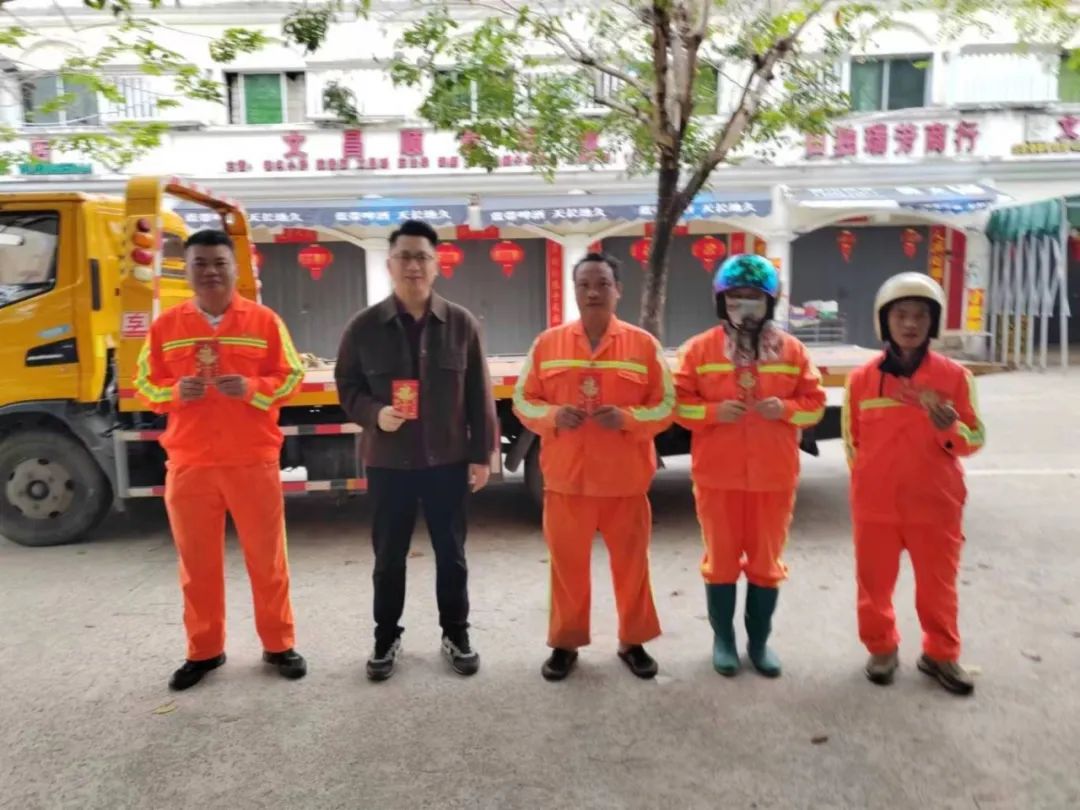 2024年2月10日大年初一,森沐環(huán)境總經(jīng)理助理、運(yùn)營(yíng)總監(jiān)柯俊帶著公司的關(guān)愛和溫暖走訪吉陽(yáng)區(qū)各項(xiàng)目區(qū)域,看望慰問了一線的職工并發(fā)放開門紅包,對(duì)他們春節(jié)期間堅(jiān)守崗位,全力保障城市環(huán)境的干凈整潔,確保群眾歡樂祥和過春節(jié)表示衷心感謝,并致以最美好的誠(chéng)摯問候和新春祝福,也預(yù)祝新的一年開門大吉。